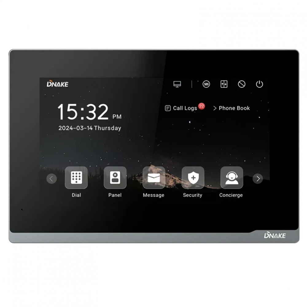 ● Дисплей: 7" TFT 1024 × 600;● ОС: LINUX;● Опції: аудіо- та відеодомофон, екстрений дзвінок, охоронна сигналізація та керування ліфтом. Також підтримує зв'язок протоколу SIP 2.0 з IP-телефоном і IP-PBX;● Пластикова рамка;● Живлення: 12В DC/PoE (802.3af)