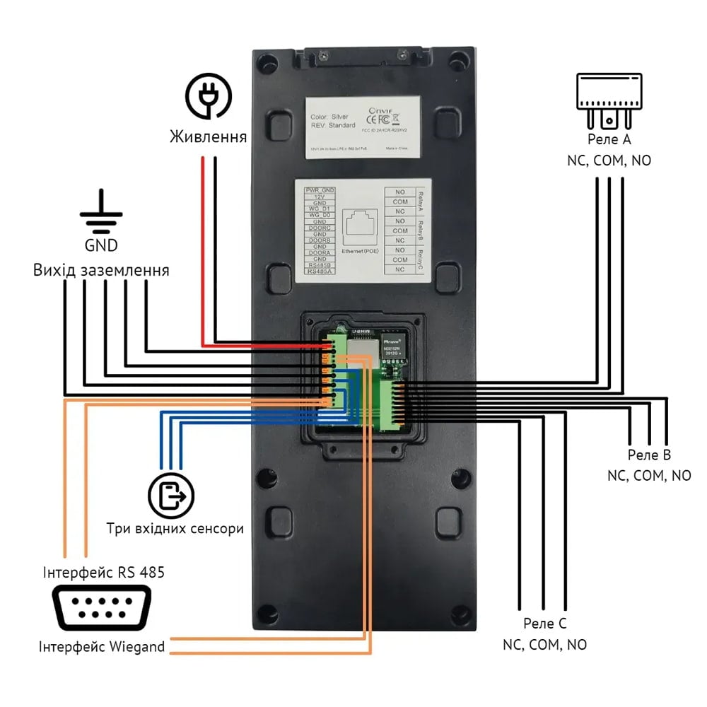 IP-відеопанель багатоабонентська з кольоровим IPS LCD-екраном 8", розпізнаванням облич та зчитувачем; підтримка багатофакторної ідентифікації: розпізнавання облич із точністю понад 99%, картка, PIN, QR-код і Bluetooth; камера 2 Мп із HDR, роздільна здатність 1920x1080, кути огляду 120° за горизонталлю / 67° за вертикаллю; RFID-зчитувач Mifare / EM-Marine / NFC; підтримка SIP, ONVIF; ІЧ/LED-підсвічування; аудіозв’язок із шумозаглушенням та компенсацією відлуння (аудіокодеки G.711a/μ, G.722); мережевий порт Ethernet RJ45 10/100M; інтерфейси: 3 релейні виходи, 3 входи, RS485, Wiegand; живлення PoE+ або 12-24 В; встановлення накладне або врізне; клас захисту IP65, IK10; робоча температура -30°C~+60°C; корпус антивандальний, нержавіюча сталь; розміри 350 / 130 / 41.6 мм