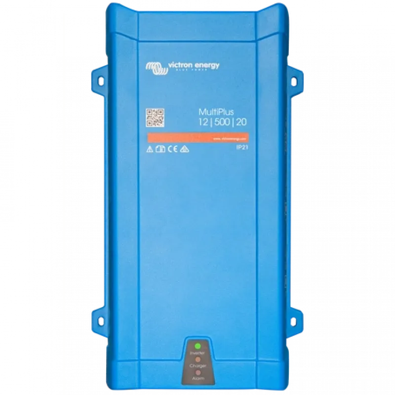 MultiPlus – це потужний інвертор із чистою синусоїдою, складний зарядний пристрій із технологією адаптивної зарядки та високопродуктивний акумулятор. Перемикач швидкості змінного струму в одному компактному корпусі. Крім цих основних функцій MultiPlus має кілька розширених функцій. До шести Multi можуть працювати паралельно для досягнення вищої вихідної потужності. На додаток до паралельного підключення три блоки можуть бути налаштовані для трифазного виходу. За допомогою багатофункціональної панелі керування можна встановити максимальний струм генератора. Потім MultiPlus враховуватиме інші навантаження змінного струму. і використовувати все зайве для заряджання, тим самим запобігаючи перевантаженню генератора. Триполюсний роз'єм.