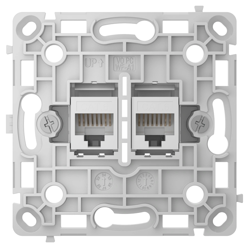 Outlet (LAN) — це вбудована Ethernet-розетка з двома портами, яку не можна додавати в системи Ajax і якою не можна керувати через застосунки Ajax. Пристрій має дизайн і кольори, ідентичні до розумних розеток і вимикачів Ajax, що дає змогу безперешкодно встановлювати їх поруч в одній рамці.