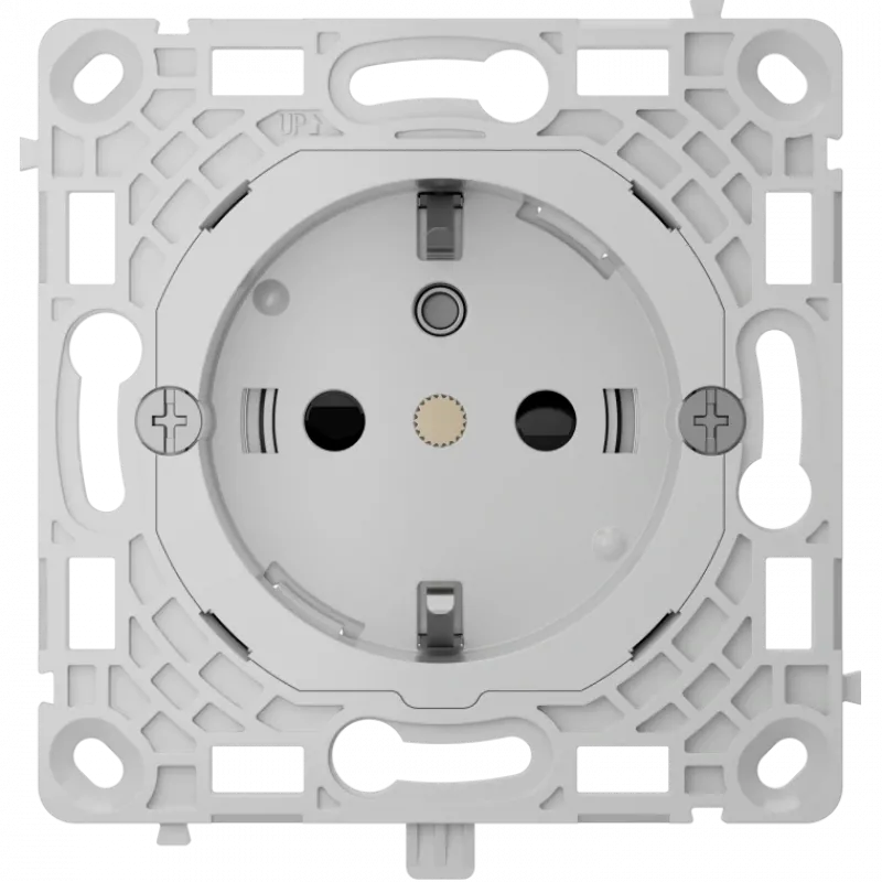 Outlet (basic) [type F] — це стандартна вбудована розетка, яку не можна додавати до системи Ajax і якою не можна керувати через застосунок. Вона має дизайн і кольори, ідентичні до розумних розеток і вимикачів Ajax, що дає змогу безперешкодно встановлювати їх поруч в одній рамці. Розʼєм розетки відповідає європейському типу F, має заземлювальний контакт і захисні шторки. Вони запобігають потраплянню в розетку пилу та бризок, а також не дають змоги застромити викрутку, ножиці, шпильку тощо.