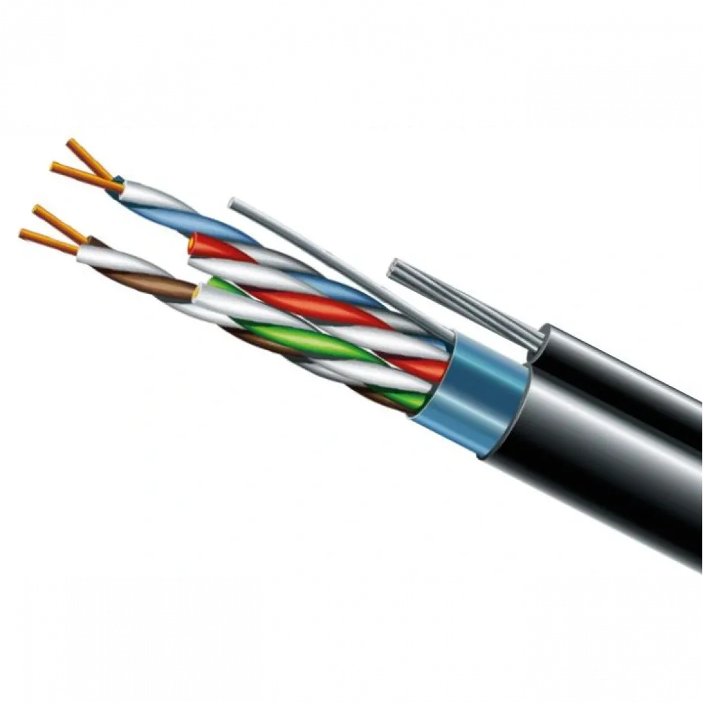 Кабель вита пара ЗЗКМ (FTP мідь вуличний із тросом) Cat. 5e F/UTP PE 4х2х24 AWG + S. M. трос (к)(72113) бухта 500м.