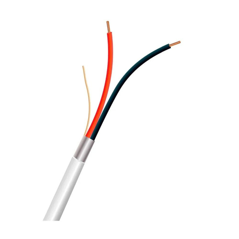 Кабель сигнальний, 2 жили з біметалу ССA – алюмінієвий сплав покритий міддю – діаметром 0.22 мм, екран з фольги, оболонка PVC-пластикат білого кольору, опір жили 14.5 Ом/100 м, бухта 100 м