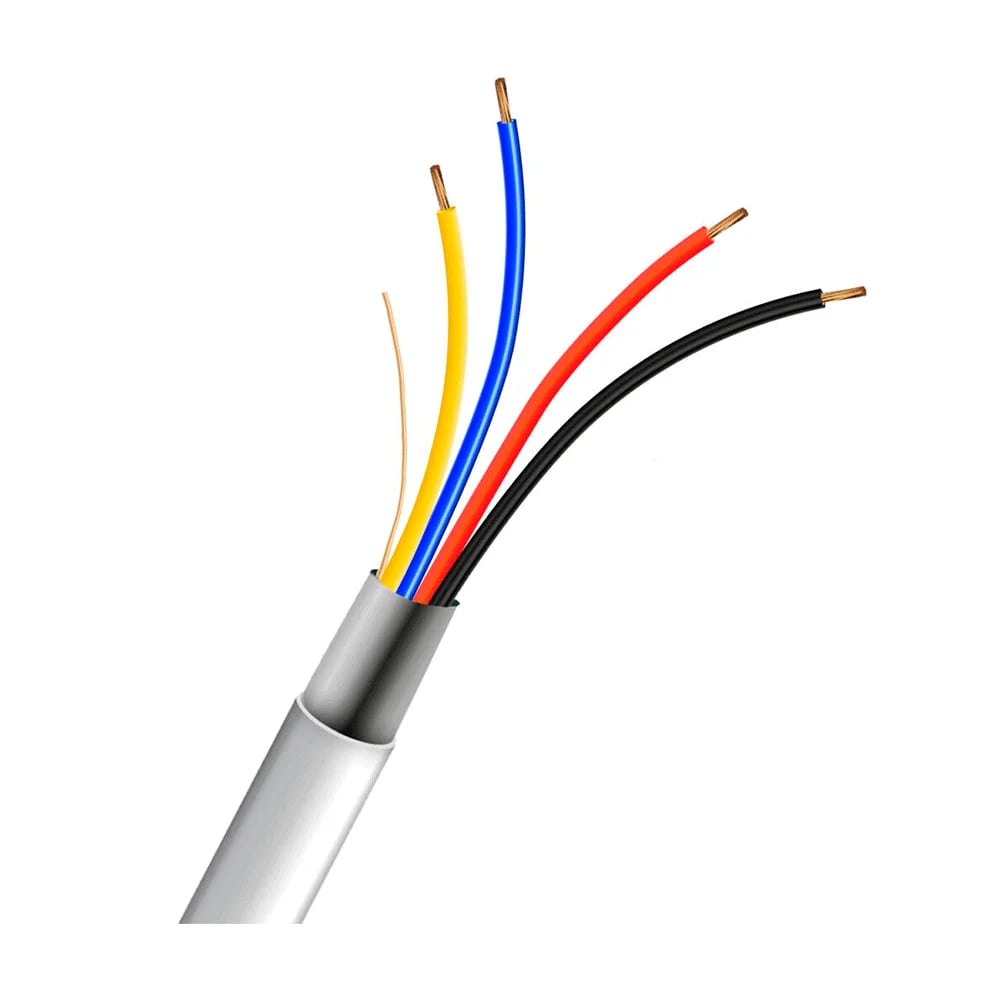Кабель сигнальний, 4 жили з біметалу ССA – алюмінієвий сплав покритий міддю – діаметром 0.22 мм, екран з фольги, оболонка PVC-пластикат білого кольору, опір жили 14.5 Ом/100 м, бухта 100 м
