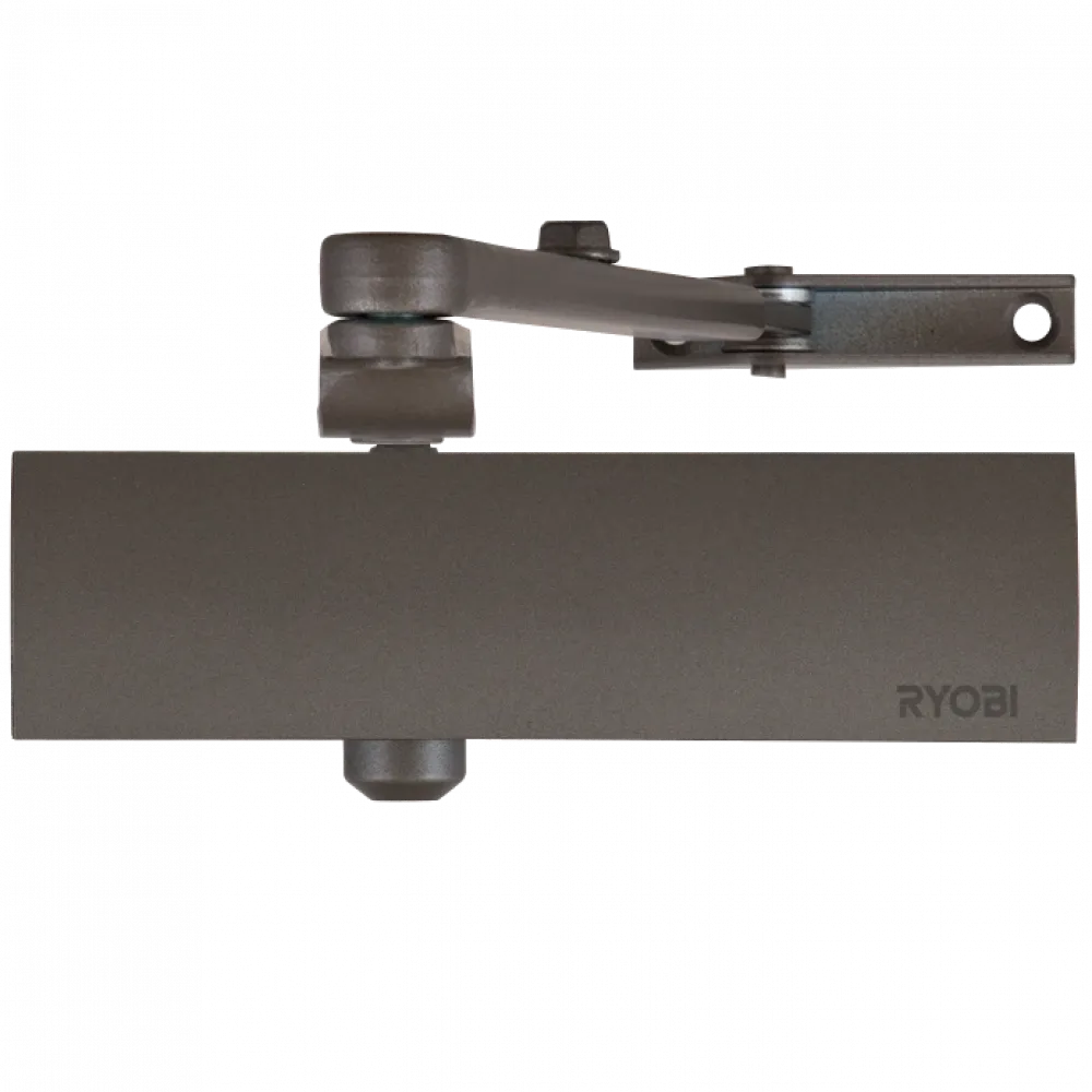 Дотягувач дверей RYOBI® серії 1200 модель D-1200 STD (Японія) накладного типу зі стандартною тягою – призначений для керування зовнішніми та внутрішніми дверима. Плаский дизайн європейского типу. Повністю контролює весь цикл зачинення дверей з роздільно регульованими швидкістями початкового та кінцевого зачинення (прихлопу). Корпус виготовлений за технологією лиття алюмінію під високим тиском. Клас 2/3/4, згідно EN1154, в залежності від місця монтажу. Можливість застосовувати у протипожежних дверях з межею вогнестійкості 60хв. Максимальна вага дверей до 80кг, Максимальна ширина дверей 1100мм.