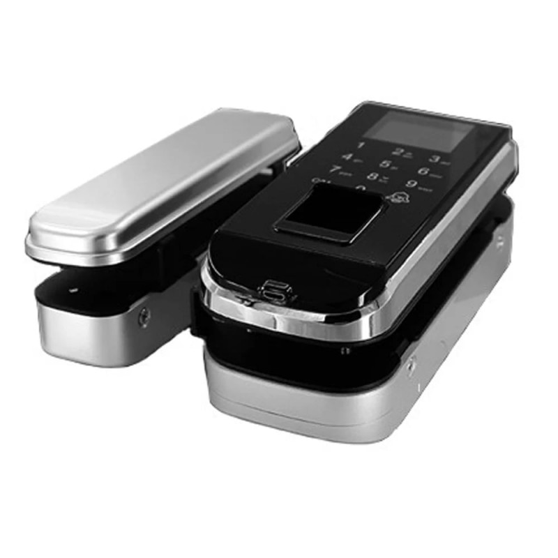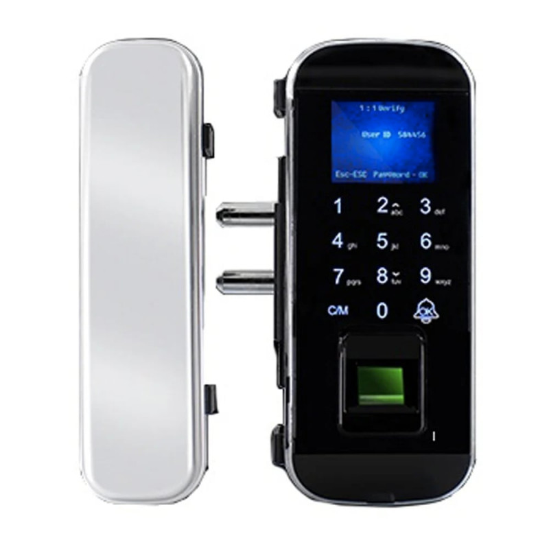 Біометричний автономний електрозамок зі зчитувачем відбитків пальців та карт EM-Marine 125 кГц; відімкнення за допомогою: відбитку пальця, коду, картки; кількість користувачів за відбитком пальця / карткою / кодом: 2000 / 1000 / 1000; 6-значний PIN-код; живлення 4*АА батарейки; сповіщення про низький заряд; можливість монтажу на скляні двері; накладний монтаж; розміри 168 / 75 / 65 мм