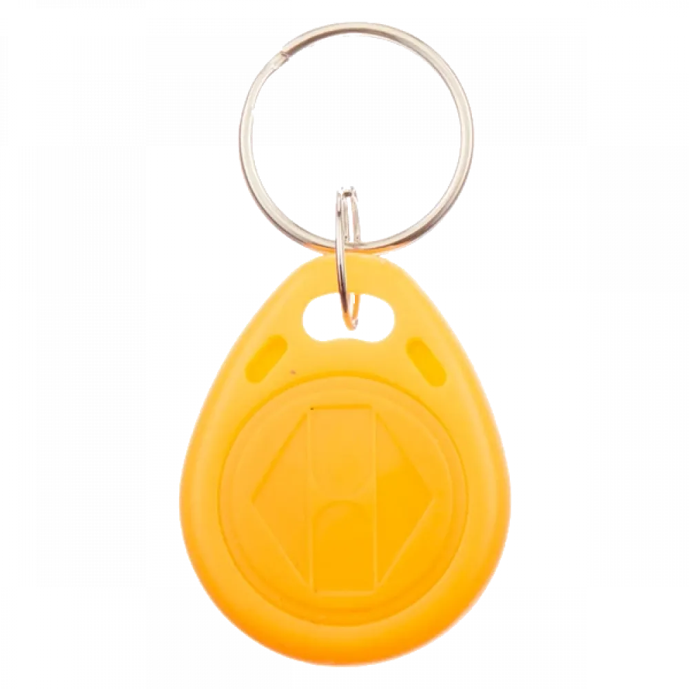 RFID перезаписуваний брелок формату EM-Marin. Робоча частота: 125KHz. Матеріал: пластик. Колір: жовтий. Розміри 35х28х5мм.