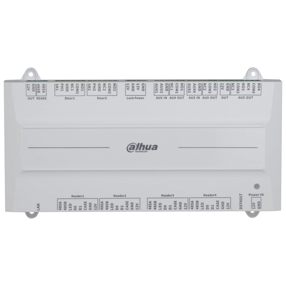 ● Контролер доступу на 2 двері;● 5x - RS-485, 4х - Wiegand, 4х - тривога вхід/вихід, 2х - кнопка виходу, 2х - статус дверей, 2х - контроль замка;● Пам'ять: користувачів 100000, відбитків 10 000, карт 100000, подій 500000;● Функції: сигналізація розкриття картридера, сигналізація вторгнення, сигналізація тайм-ауту дверного датчика, сигналізація незаконної карти та примусу;● DC 12В, PoE