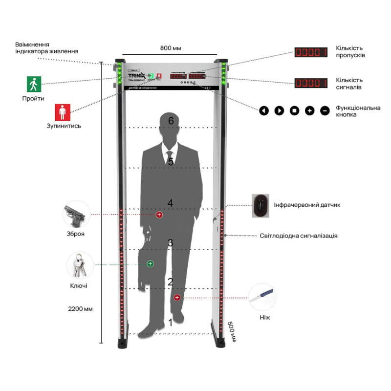 Арочний металодетектор Trinix TRX-500AMD, 18 зон детекції