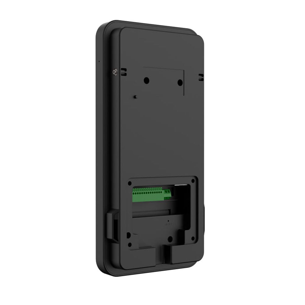 Біометричний термінал контролю доступу з розпізнаванням облич та зчитуванням карт Mifare 13.56 МГц. Камера з подвійним об’єктивом з роздільною здатністю 2 Мп і фокусною відстанню 4.3 мм, матриця 1/2.8" Progressive Scan CMOS, кути огляду горизонтальний 87°, вертикальний 44°, відеокодек H.265+ / H.265 / H.264+ / H.264 / MJPEG; дисплей 6.97" з роздільною здатністю 600x1024; дальність розпізнавання облич 0.3-1.5 м, база даних на 10000 облич; тип карт Mifare card / Desfire card / FM1208 Card / Gicard, частота 13.56 МГц, дальність зчитування до 3 см; підсвічування LED 0.3-1 м / ІЧ 0.3-2 м; вбудовані мікрофон і динамік; 1 тривожний вхід / 1 вихід; Wiegand; ONVIF; живлення 12 В / 1 А, споживання 12 Вт; розміри 244.6 / 120.4 / 30 мм; вага 520 г