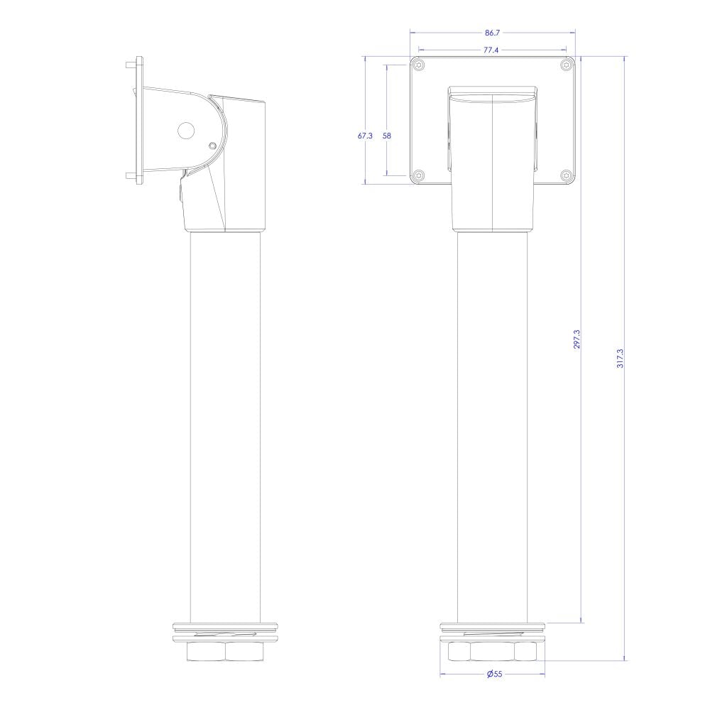 Кронштейн для монтажу біометричного термінала контролю доступу TVT на турнікет або вертикальну стійку; сумісний з терміналами розпізнавання обличчя; матеріал корпусу метал; розміри 317.3 / 86.7 / 67.3 мм