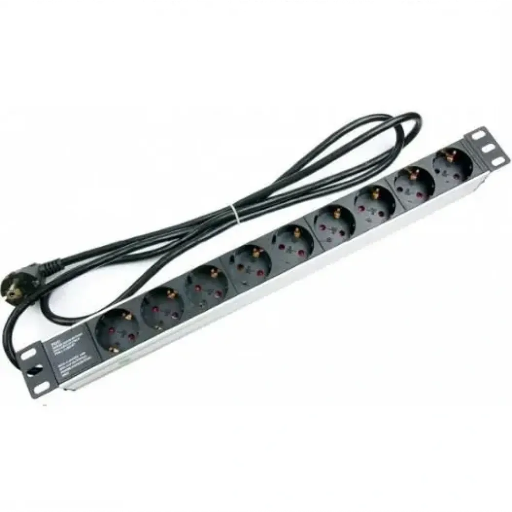 Монтажна висота: 1U; Загальна кількість розеток: 9; Кабель: є / 1.8 м; Матеріал корпусу: алюміній; Сила струму (макс.): 16 А; Вхідна напруга (ном.): 220-250 В (при частоті 50/60 Гц); Максимальна потужність: 3500 Вт