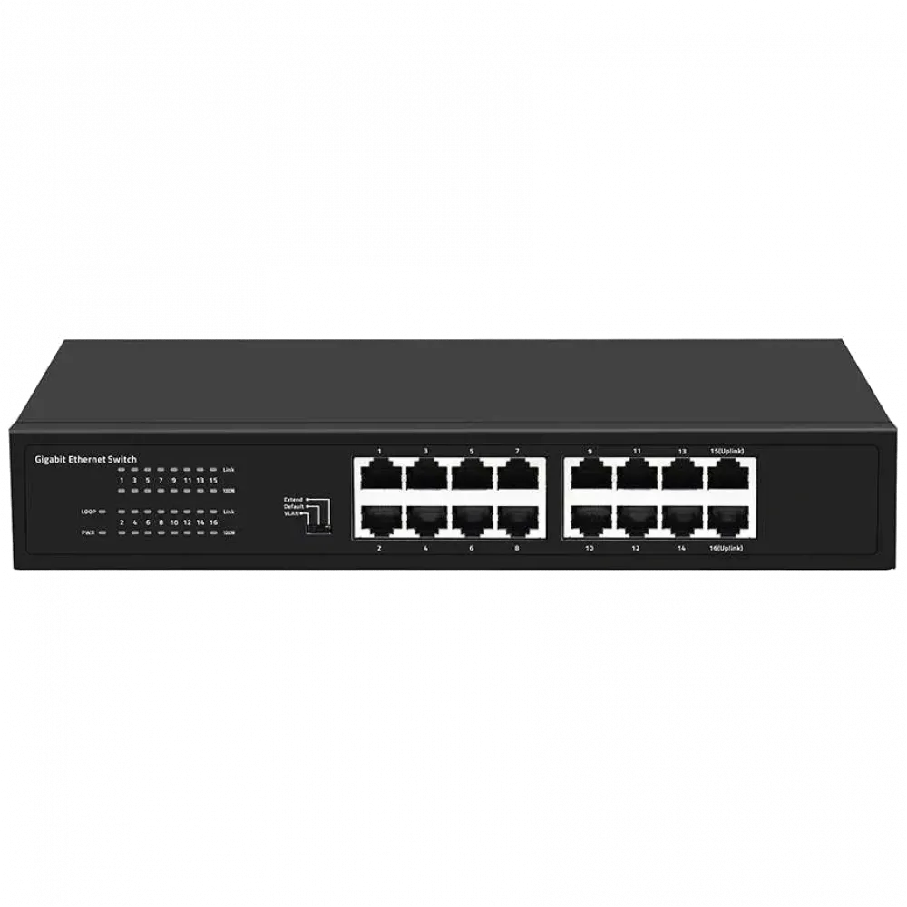 ● Downlink порти: 16x RJ45 (10/100/1000M);● Живлення: 12V/2A (зовнішній адаптер);● Робоча температура: -20º - +55ºC;● Автоматичне визначення паралельних та перехресних ліній.;● 270x180x45 мм