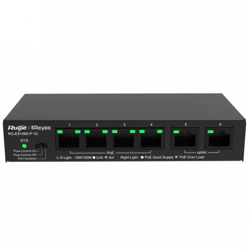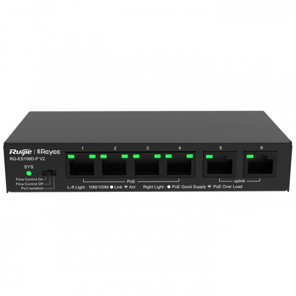 Комутатор 6 портів некерований Ruijie Reyee RG-ES106D-P V2 PoE