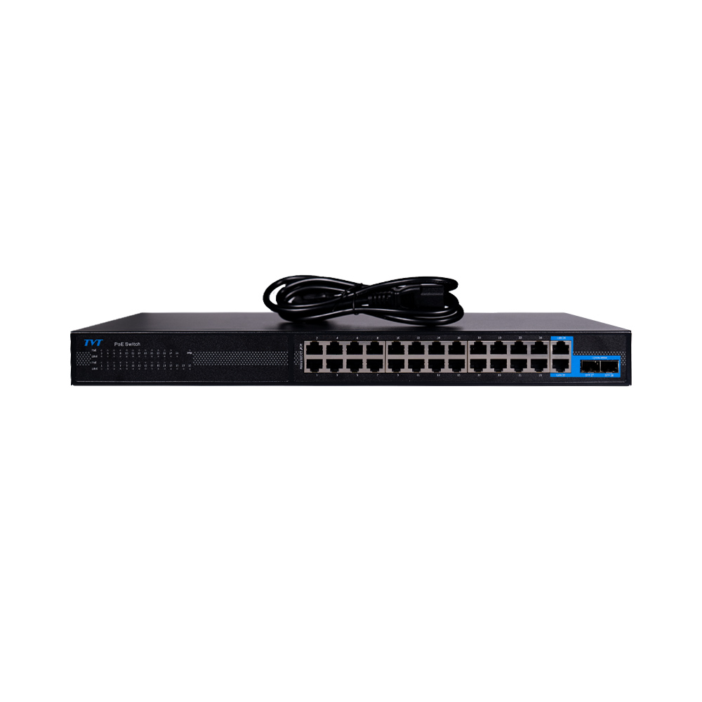 У нашій компанії ви можете придбати PoE-комутатор 28-портовий TVT TD-B2224S1-PGA з 24 портами PoE.