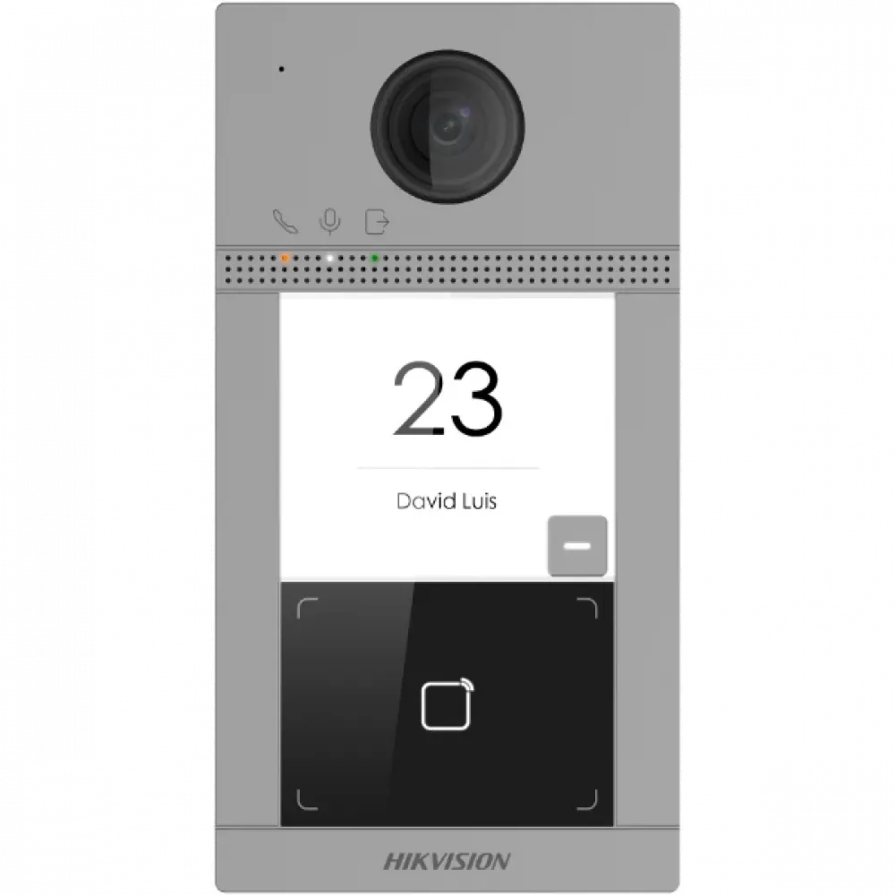 2 MP HD камера True WDR, зчитувач Mifare карт; підключення до 4 домофонів, до 16 додаткових панелей, до 8 дверних дзвінків; Монтаж накладний; 1080р - 25к / с, кодек H.264, огляд Г: 129 ° В: 75 °; Інтерфейси: RS-485; Wi-fi 2.4 ГГц, TF картка до 128 Гб; ІЧ-підсвічування 3 м; Двосторонній аудіозв'язок; Ступінь захисту: IP65, IK08; Живлення: DC 12В/PoE IEEE802.3af; Розблокування карткою, через клієнтське програмне забезпечення, через додаток, через домофон; робоча температура -40 ° C - 53 ° C; 174x91x29 мм