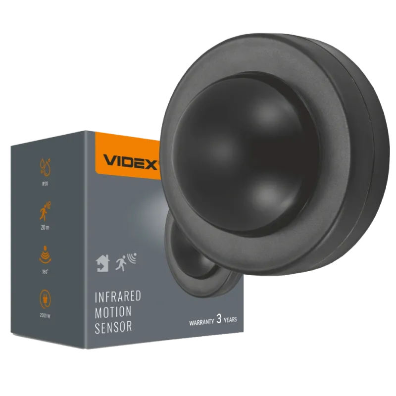 Особенности:освітленість, вмикання та вимикання:< 3-2000 Lx; кут виявлення: 360°; відстань виявлення: 20 м