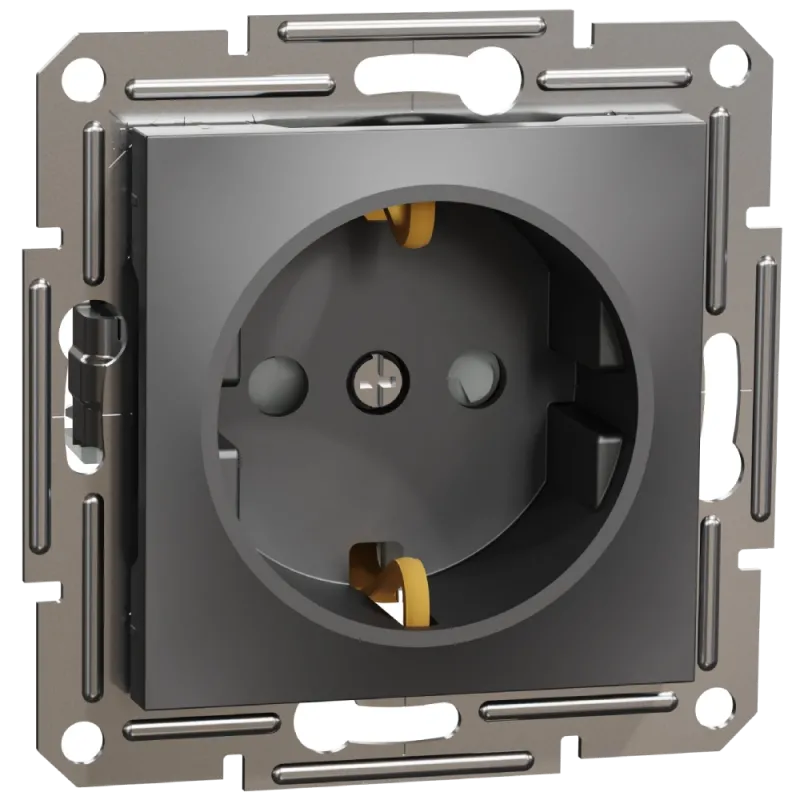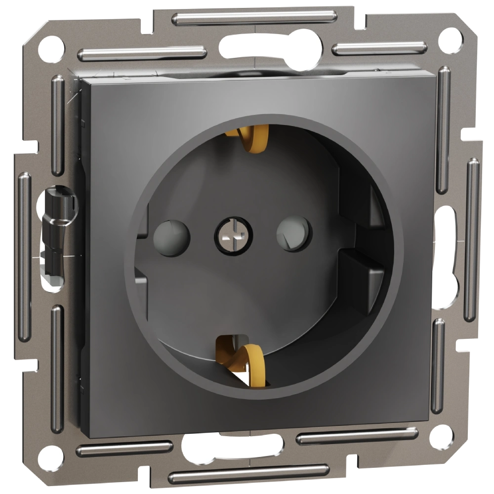 Розетка с заземлением и шторками антрацит Schneider Electric Asfora EPH2900271