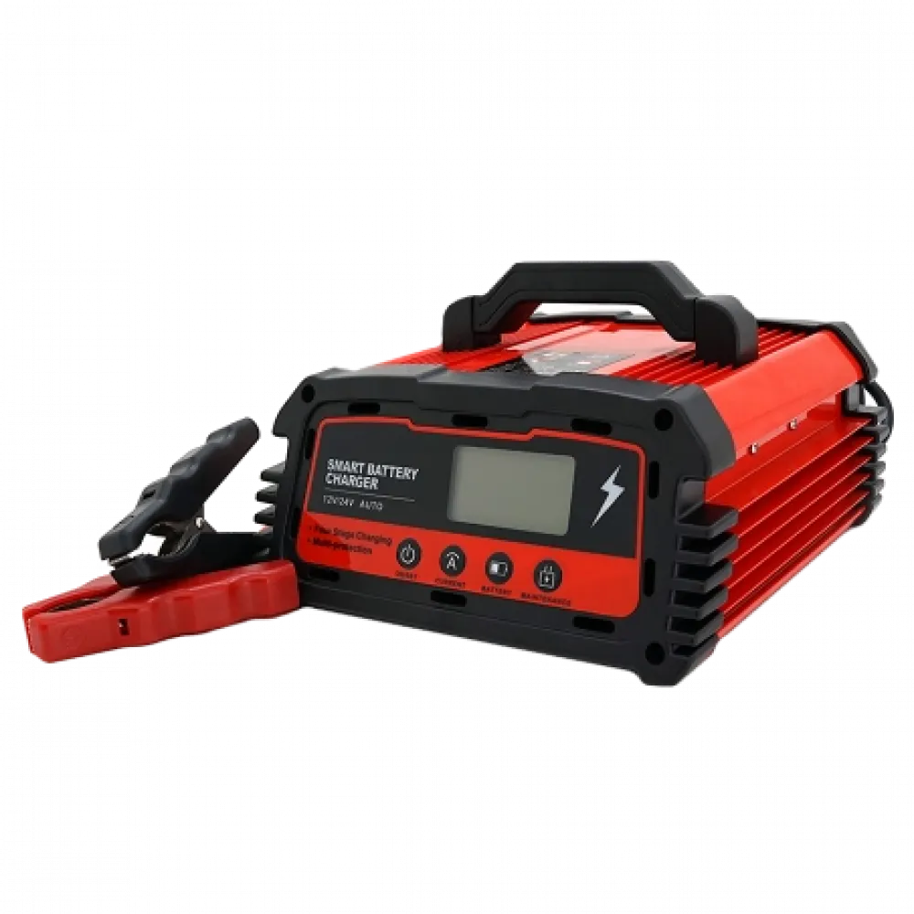 Вхідна напруга AC – 110/220V;Вихідна напруга (повного заряду) DC – 14,8/29,6V;Вихідний струм - 12V: 6А, 8А, 10А/24V: 6А;Потужність ЗП, Вт -230;Тип акумулятора – MF, WET, AGM, GEL;Індикація: дисплей LED;ККД – 85%;Підключення АКБ - дроти з крокодилами;Розміри: 195*145*115 мм;Довжина кабелю мережі – 150 см;Довжина кабелю АКБ – 100 см;Вага, кг – 1,3 кг
