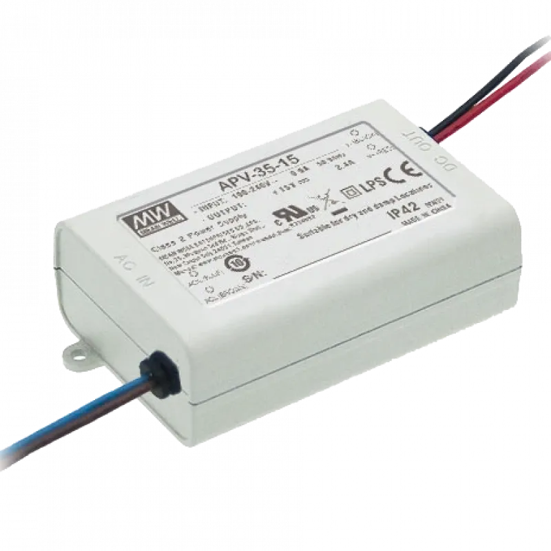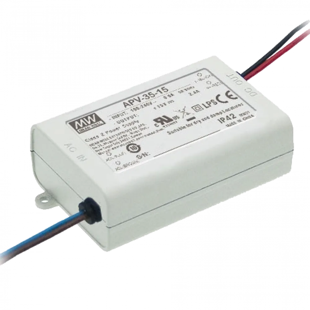 ● Діапазон вхідної напруги: 90~264 В AC/127~370 В DC;● Номінальна потужність: 35 Вт;● Вихідна напруга: 12 В DC;● Вихідний струм: 3 А;● Ступінь пило- та вологозахисту: IP42;● ККД: 82%;● Захисту від: короткого замикання, перевантаження, перенапруги;● Клас захисту від ураження електричним струмом – Class II;● Охолодження: вільна конвекція;● Температурний діапазон: -30 - +70 ºС;● Розміри: 84х57х29,5 мм;