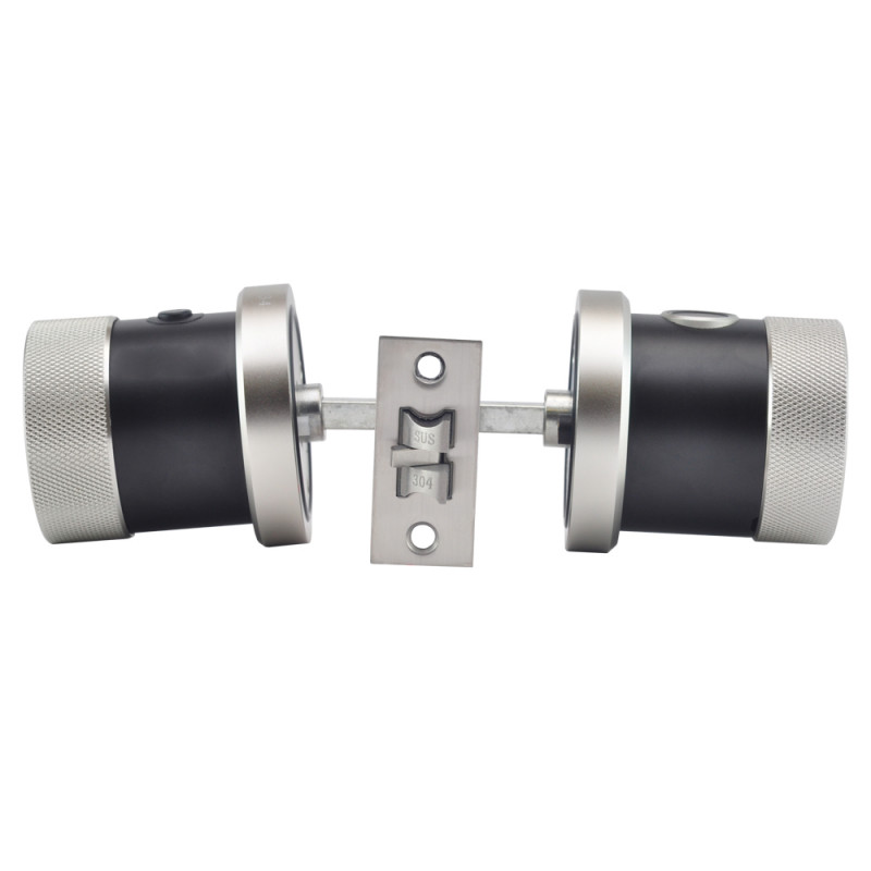 Биометрический автономный электрозамок с Bluetooth и считывателем отпечатков пальцев и карт Mifare 13.56 МГц; отключение с помощью: отпечатка пальца, кода, карты, приложения; количество пользователей по отпечатку пальца/карте/коду: 120/200/150; тип замка: защелка; разъем microUSB; приложение для работы TTLock, TTHotel; питание 4*АА батарейки; материал и толщина двери: металлическая/деревянная, 35-90 мм; врезной монтаж; материал корпуса алюминиевый сплав; размеры 75/60/35 мм