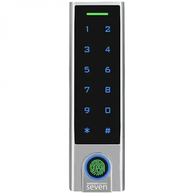 Управління та налаштування через Bluetooth (безкоштовний мобільний додаток), Wi-Fi (опціонально за допомогою шлюзу SEVEN LOCK). Налаштування контролера доступне як зі смартфона, так і з самого контролера. Усі налаштування, створені за допомогою клавіатури, будуть автоматично відображатися у програмі. Підтримка дистанційного відкриття замку за допомогою Bluetooth брелка SEVEN LOCK SR-7716B. Управління та налаштування через інтернет (опціонально). Ступінь пило - та вологозахисту IP67 (призначений для зовнішньої установки). Підтримка стандарту карт MIFARE. Підтримка NFC. Ідентифікація користувача піднесенням телефону до замку (за допомогою NFC мітки SEVEN R-90); 1000 карт користувачів, 150 ПІН-кодів, 100 відбитків пальця, необмежена кількість електронних ключів доступу. Режим звукового сповіщення.