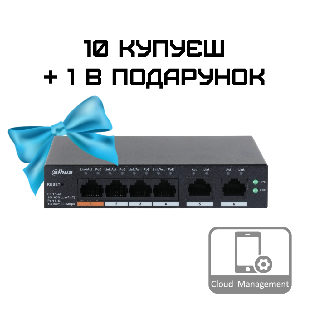 Комплект 10+1 Dahua DH-CS4006-4ET-60 PoE