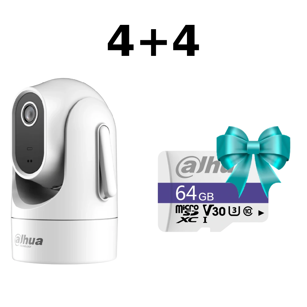 КУПУЙ 4 КАМЕРИ WIFI Dahua - отримай 4 карти пам’яті по 64 ГБ - в подарунок!● Роздільна здатність 4МП, 1/2.8" CMOS - матриця;● Фокус 4мм (кут огляду 80°);● Максимальна роздільна здатність відео 4 МП (2560 × 1440) - 25 к\с;● Кодеки H.264B; Smart H.265+; H.264; H.265; Smart H.264+; MJPEG;● ІЧ світло (до 15м);● Опції зображення: поворот зображення, DWDR, 3D DNR, HLC, BLC;● Аналітика та аларми: прохід; вторгнення; виявлення людини; виявлення руху/злому; виявлення звуку; виявлення відключення мережі; виявлення конфліктів ІР; визначення стану картки; виявлення недостатнього простору пам'яті;● Micro SD (максимум 512ГБ);● 5 VDC (Type-C);● Колір корпусу – білий