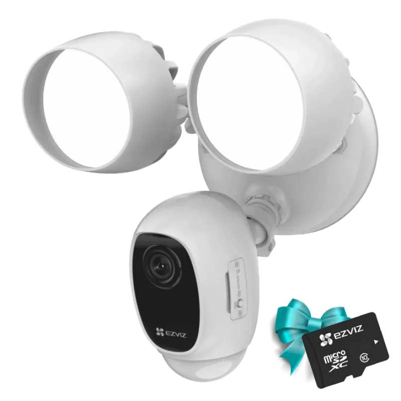 2 Mп Wi-Fi EZVIZ з сиреною; 2 LED лампи 2000 лм 3000К; Стиснення: Smart H.264, H.265, 1920 × 1080 25 к / с; PIR: 10м, кут 270 °, видиме світло: 25м, кут огляду 120 °. Функції: датчик руху, двосторонній аудіо зв'язок, 3D DNR, WDR, BLC; Micro SD до 256 Гб; IP65, -30 ° C - 50 ° C, AC 100-240В, 185x186x268 мм, 1.5 кг