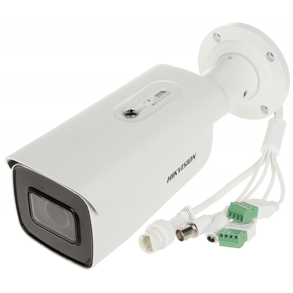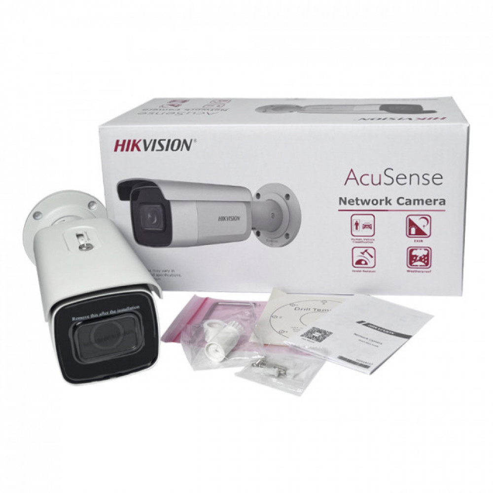 IP-камера DS-2CD2643G2-IZS работает на базе технологии AcuSense, которая с помощью алгоритмов глубокого обучения позволяет классифицировать объекты и таким образом фильтровать ложные тревоги от событий VCA. Камера оснащена 1/3" 4Mpx CMOS-датчиком изображения с прогрессивным сканированием, который может записывать видео с максимальной скоростью 25/30 к/с с разрешением 2688×1520 (4Mpx).Устройство имеет прочный корпус с высокой степенью защиты от атмосферных воздействий (IP67) и ударов (IK10). Благодаря системе сжатия H.265 сигнал, передаваемый камерой, занимает меньше места на носителе информации (например, на жестком диске или карте памяти microSD), что обеспечивает эффективную защиту и более длительное время хранения данных. Стоит отметить, что, несмотря на сжатие, передаваемая информация сохраняет свою детализацию и высокое качество. Камера оснащена объективом с возможностью дистанционной регулировки угла обзора (мотозум) и светодиодной подсветкой EXIR IR LED. Устройство оснащено тревожными разъемами, с помощью которых камеру можно включить в сеть охранной сигнализации, и аудиоразъемами, с помощью которых можно одновременно записывать видео и звук. Благодаря технологии PoE установка камеры происходит быстро и несложно.