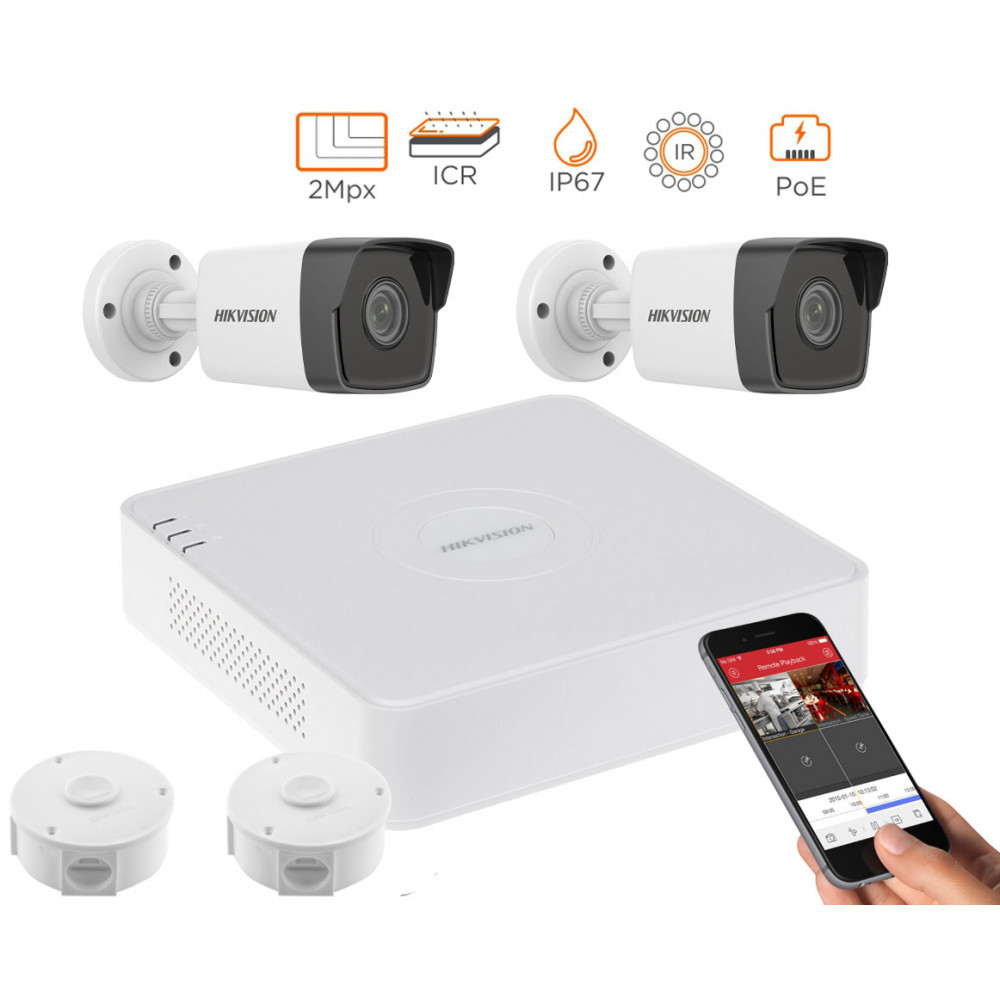 2MP IP комплект для видеонаблюдения Hikvision Kit 2MP 2 Bullet Out lite