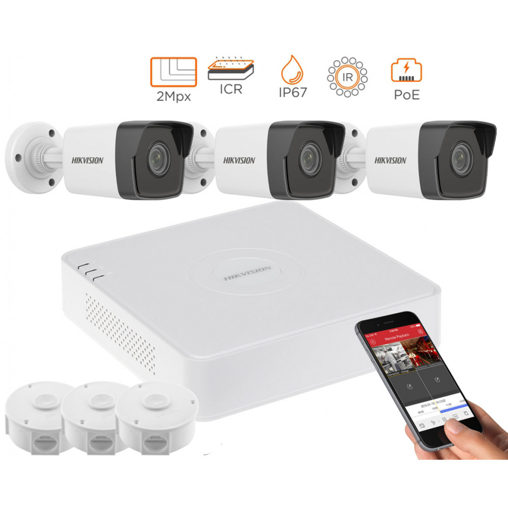 В нашей компании вы можете купить 2MP IP комплект для видеонаблюдения Hikvision Kit 2MP 3 Bullet Out lite.
