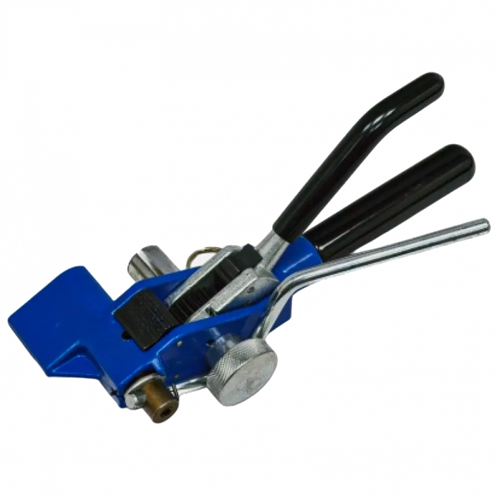 Натягувач для бандажної стрічки з храповим механізмом служить для натягу, загинання та обрізання сталевої бандажної стрічки.Цей ручний інструмент необхідний при монтажі арматури (кронштейнів для вуличного освітлення та гаків для монтажу самонесучих ізольованих проводів) на опори. Даний інструмент дозволяє швидко та якісно виконати монтаж. Максимальна ширина бандажної стрічки, яку можна обрізати – 20 мм