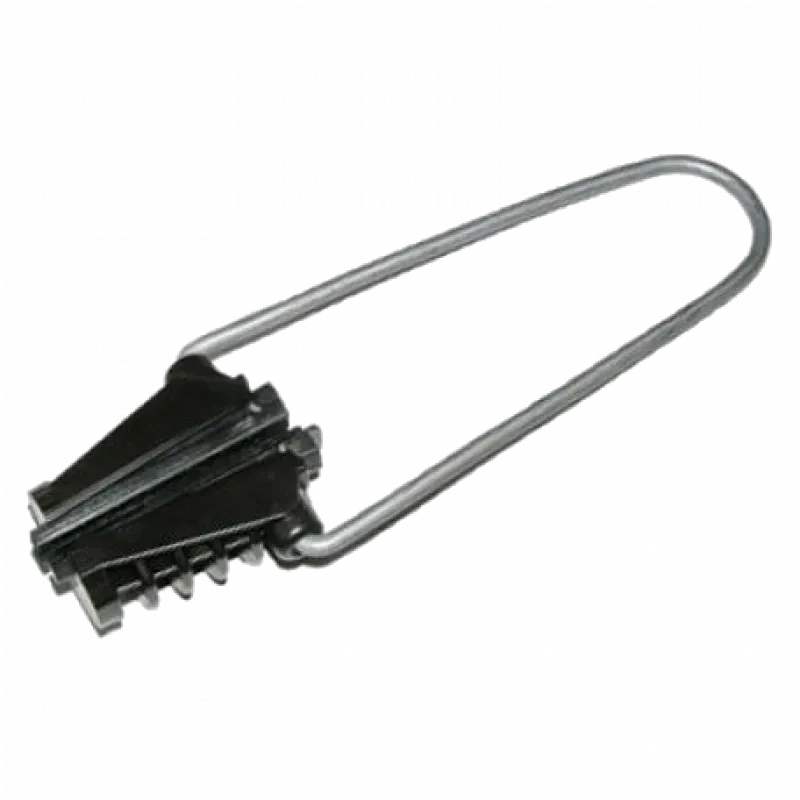 Анкерный клиновый натяжной зажим предназначен для быстрого закрепления самонесущих (ADSS) оптических кабелей. Обеспечивает зажим и закрепление кабелей, без необходимости обнажать или отделять несущий трос. Конструктивно прост зажим для построения воздушных линий связи, по столбам освещения, с максимальным пролетом 70 м.
