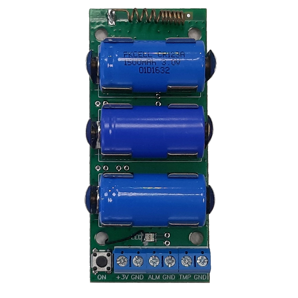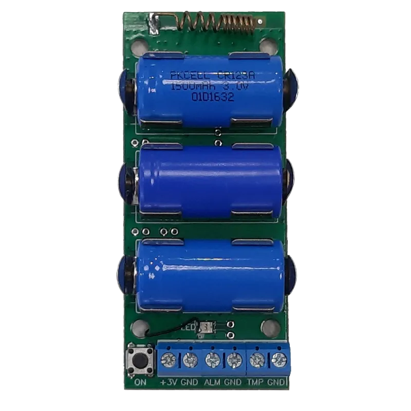 2 входи для підключення окремих дротових датчиків. 1 вхід тамперу. вихід для живлення датчиків 3В, 50 мА. Три батареї CR123A