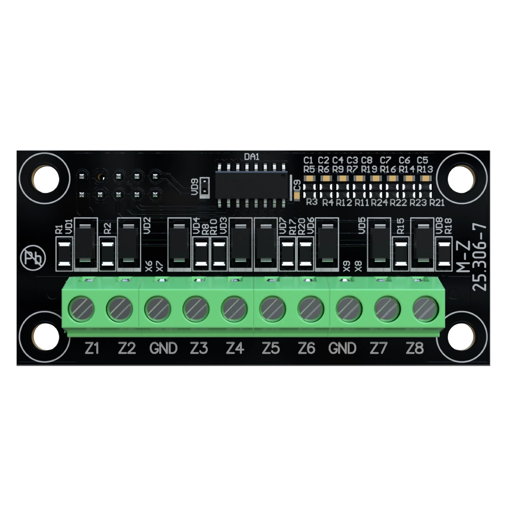 8 зон сигналізації; Встановлення на базову плату ППК «Orion NOVA M», ППК серії «Оріон NOVA» чи модулів «M-ZP mBox» та «M-ZP box» в спеціальний роз’єм.