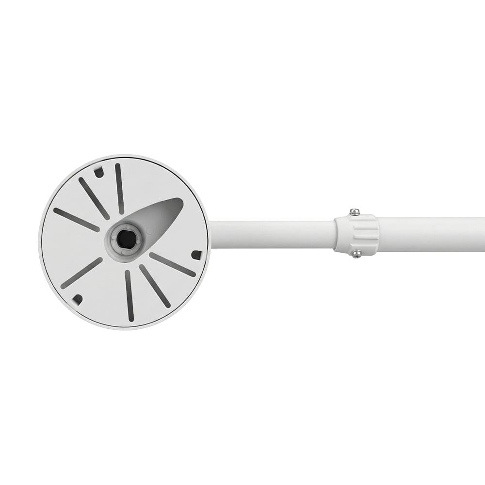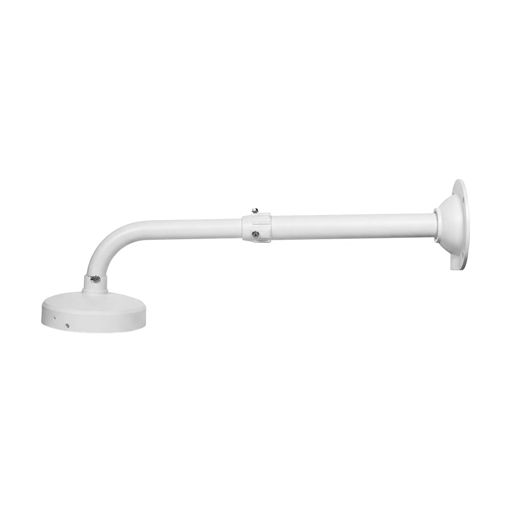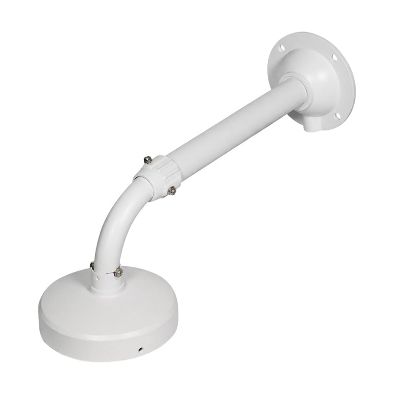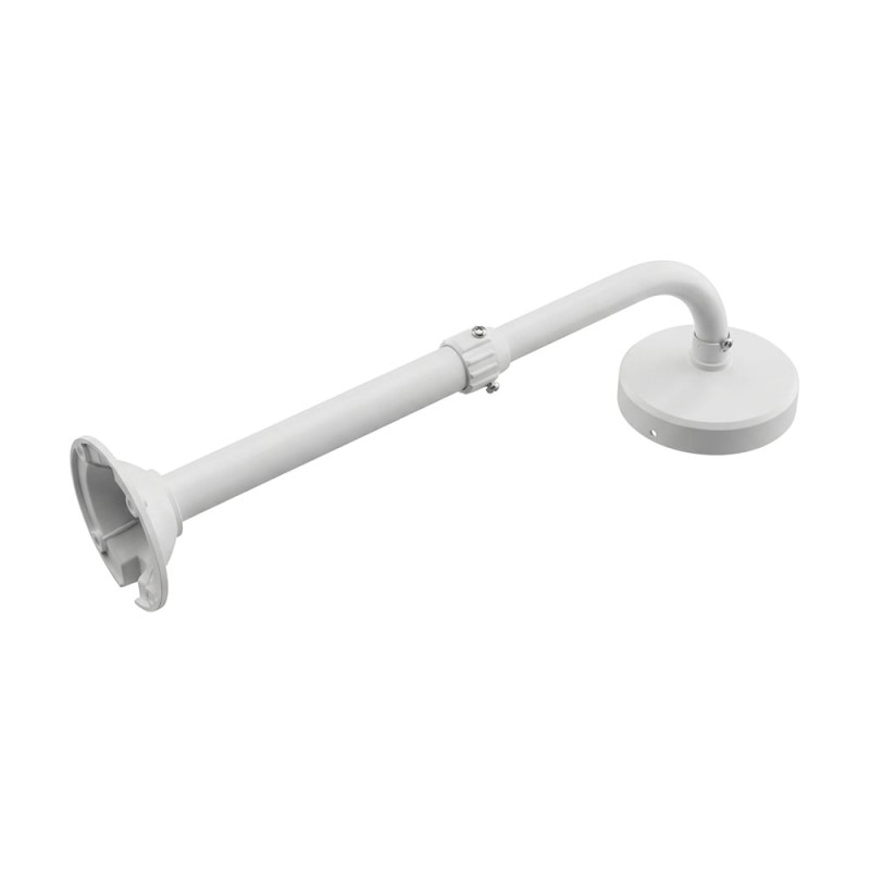 Настінний кронштейн з монтажною коробкою для камер; телескопічна конструкція з регулюванням довжини від 30 до 60 см; матеріал – алюмінієвий сплав, стійкий до зовнішніх умов; діаметр коробки 128 мм
