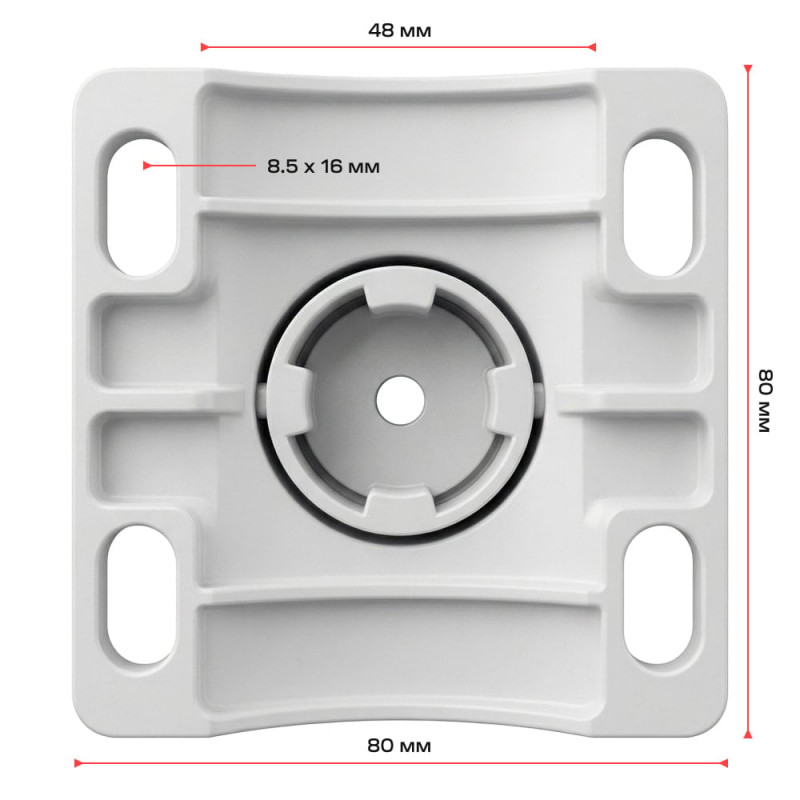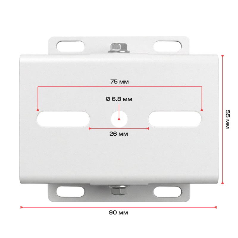 Кронштейн для монтажу відеокамер на стовп, трубу або щоглу; регульоване кріплення з кутом повороту 360° та нахилу до 180° для точного позиціонування камер; матеріал – алюміній, стійкий до впливу зовнішніх факторів; кріплення здійснюється за допомогою двох хомутів шириною до 15 мм – хомути/стяжки купуються окремо; габарити: висота 90 мм, монтажна платформа 90 / 55 мм, основа 80 / 80 мм