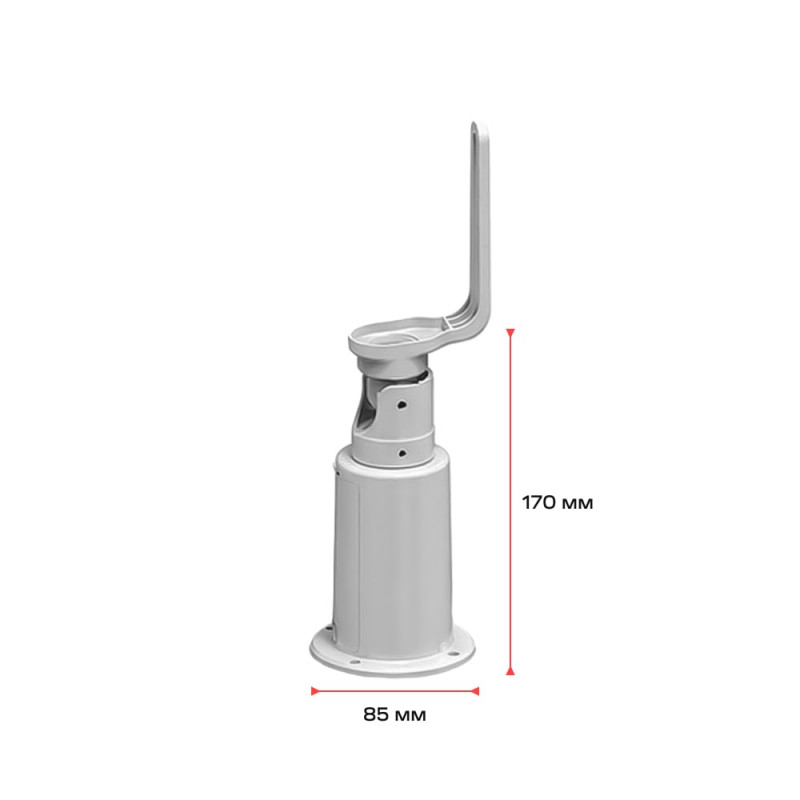 Кронштейн для камер, можливість настінного або стельового монтажу; механізм трьохосьового регулювання для максимально точного позиціонування камери; отвір в основі для прокладання кабелю; матеріал – алюмінієвий сплав, стійкий до зовнішніх умов; можливість встановлення декількох камер; висота 170 мм, діаметр основи 85 мм