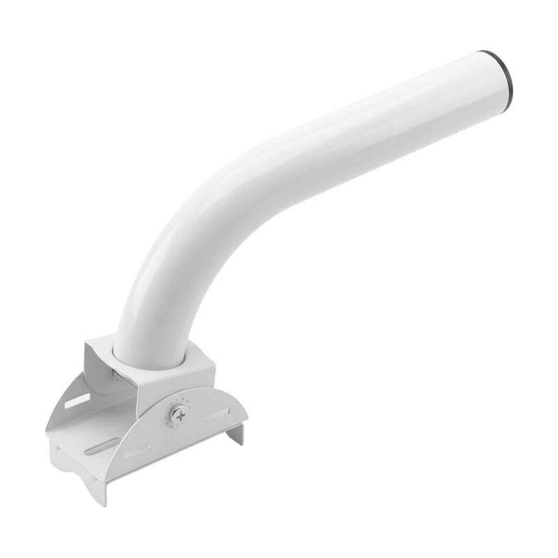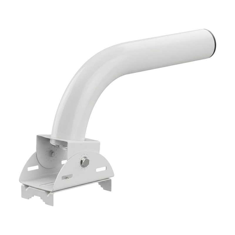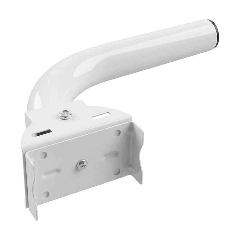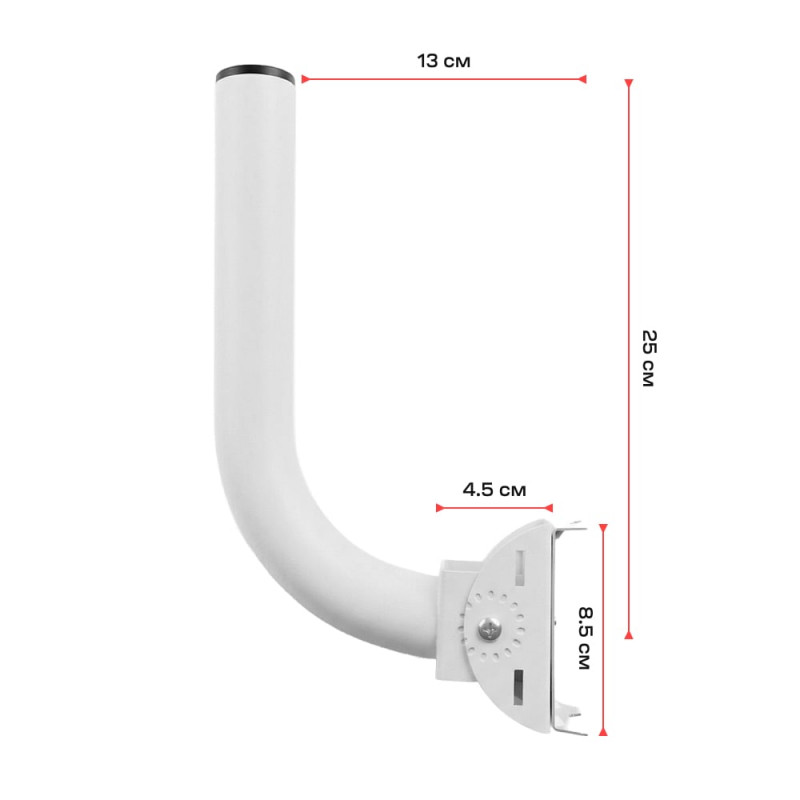 Настінний кронштейн для камер; можливість монтажу на стовп; регульований механізм з кутом нахилу до 120°; матеріал – метал, стійкий до зовнішніх умов; для монтажу на стовп необхідні 2 металеві хомути – купуються окремо; висота 250 мм, винос (глибина) 130 мм, висота основи 85 мм