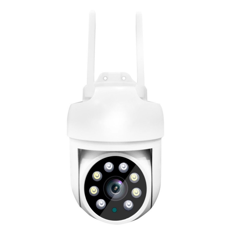 3Mp вулична поворотна IP-відеокамера з підтримкою Wi-Fi (2.4 ГГц), з подвійним підсвічуванням ІЧ+LED; роздільна здатність запису 2304*1296 пікселів; об’єктив f=4 мм; матриця 1/2.9" CMOS; відеокодек H.264; ІЧ-підсвічування 15 м + LED-підсвічування 15 м; кут повороту 0-340°, кут нахилу 0-90°; вбудовані мікрофон і динамік, двостороннє аудіо високої якості; віддалений моніторинг на смартфонах iOS та Android (застосунок CareCamPro); запис за детекцією руху та інтелектуальний запис у разі виявлення у кадрі людини на карту micro SD (до 128 Гб); режим AP – точки доступу; порт Ethernet 1*RJ45, 10/100M 10-100 Base-T; P2P; живлення DC 12V/1.2A; пластиковий корпус; ступінь захисту IP65; робоча температура -10°C~+45°C; розміри 144 / 120 / 90 мм; вага 300 г