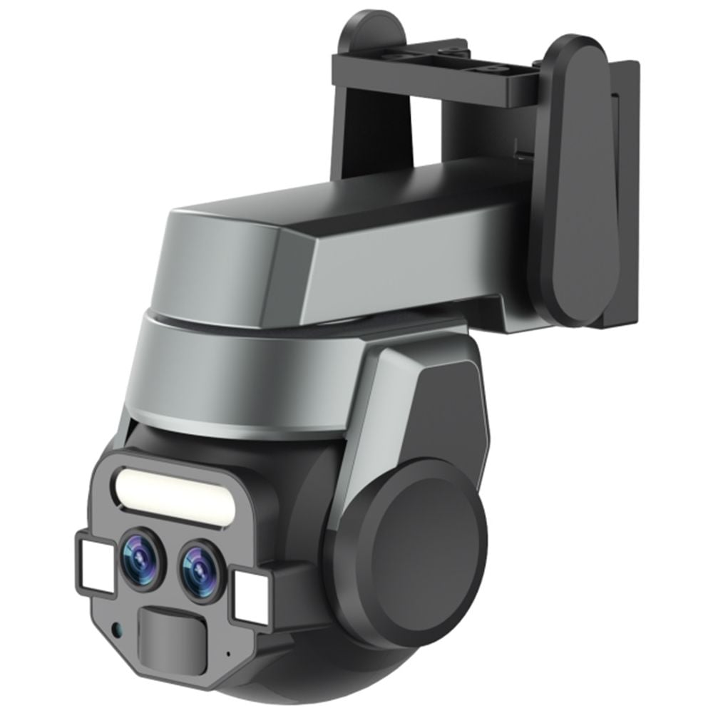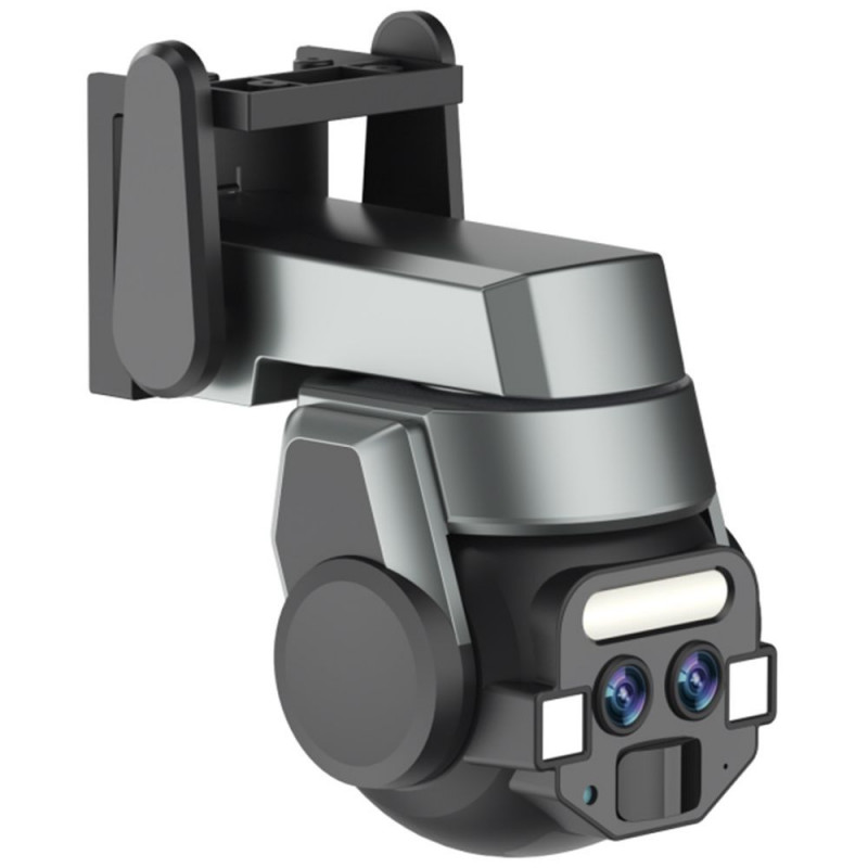 6Mp (2*3Mp) вулична поворотна IP-відеокамера з підтримкою Wi-Fi (2.4 ГГц), з подвійним об’єктивом і подвійним підсвічуванням; об’єктив (4 мм + 8 мм) для вільного перемикання з різними фокусними відстанями; матриця 1/2.8″ CMOS; роздільна здатність запису 2304*1296 x2; відеокодек H.264/H.265; кут повороту 0-350°, кут нахилу 0-90°; ІЧ-підсвічування до 20 м + LED 15 м; повнокольорове зображення в нічному режимі; віддалений моніторинг на смартфонах (застосунок CareCamPro); виявлення руху на відстані до 12 м, детекція людини; вбудований мікрофон та розмовний динамік; запис за детекцією на карту micro SD (до 128 Гб) або у хмарний сервіс; живлення 12В/1.2А, блок живлення у комплекті; потужність споживання 15 Вт; робоча температура -20°C~+60°C; клас захисту IP65; розміри 185 / 165 / 120 мм; вага 560 г