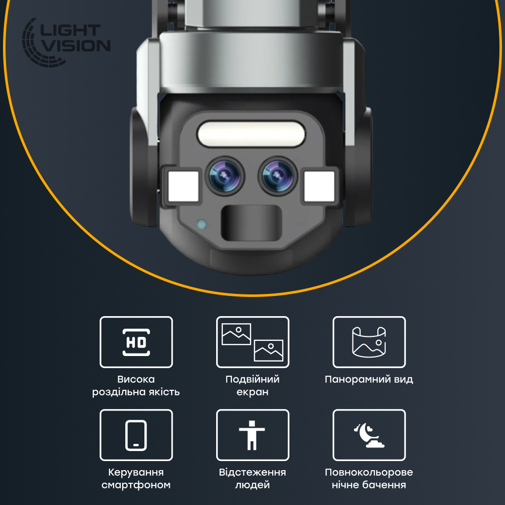 IP PTZ-відеокамера з WiFi 6Mp (2*3Mp) Light Vision VLC-9648WI10ZL f=4+8mm, ІЧ+LED-підсвічування, з мікрофоном