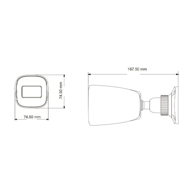 2 Mp IP-відеокамера; матриця 1/2.8“ CMOS; об’єктив f=2.8 мм; відеокомпресія H.265 / H.264; ІЧ-підсвічування до 20 м; світлочутливість 0.0126 Люкс, при F1.2, AGC увімк. / 0 Люкс з ІЧ; механічний ІЧ-фільтр; функції: WDR, HLC, BLC, день/ніч (ICR); мережа RJ45; бітрейт 64Kbps ~ 4Mbps; живлення DC 12 В/PoE; ступінь захисту IP67; габаритні розміри 162.1 / 74.8 / 73.8 мм; вага 240 г