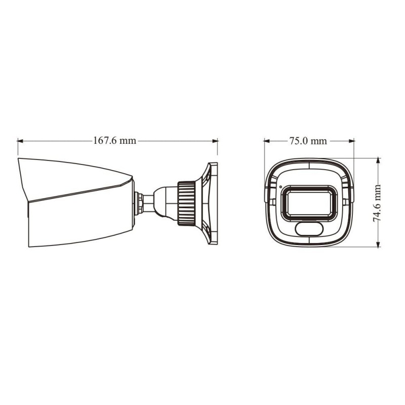 4Mp IP-відеокамера з функціями аналітики; матриця 1/3″ CMOS; роздільна здатність 4Mp (2560*1440); фіксований об’єктив f=2.8 мм; кути огляду 95° горизонтальний, 53° вертикальний; LED-підсвічування до 20 м та ІЧ-підсвічування до 30 м; відеокомпресія H.265+/H.265/H.264+/H.264; чутливість 0.07 Люкс @F2.0, AGC увімкнено, 0 Люкс з підсвічуванням; мережа: RJ45 100M; ONVIF; живлення DC12V/PoE, споживання 4.5 Вт; вбудований мікрофон; ступінь захисту IP67; габаритні розміри 167.6 / 75 / 74.6 мм; вага 0.405 кг