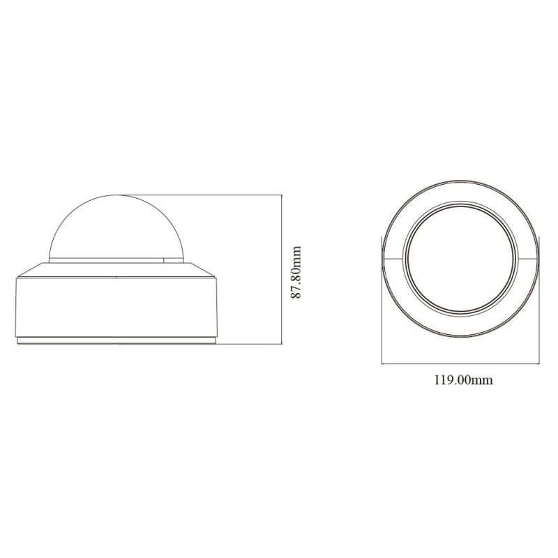 4Mp IP-відеокамера з функціями аналітики; матриця 1/3″ CMOS; роздільна здатність 4Mp (2560*1440); фіксований об’єктив f=2.8 мм; кути огляду 94° горизонтальний, 50° вертикальний; LED-підсвічування до 30 м та ІЧ-підсвічування до 30 м; відеокомпресія H.265+/H.265/H.264+/H.264; чутливість 0.005 Люкс @F1.6, AGC увімкнено, 0 Люкс з підсвічуванням; мережа: RJ45 100M; ONVIF; P2P; 1 аудіовхід, вбудований мікрофон; запис на microSD карту (до 256 ГБ); живлення DC12V/PoE, споживання 5.5 Вт; ступінь захисту IP67; габаритні розміри Ø 119 / 87.8 мм; вага 0.64 кг