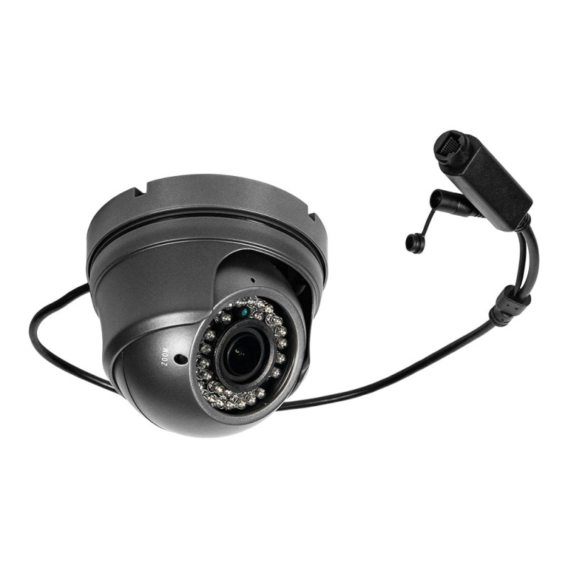 5Mp зовнішня купольна IP-відеокамера; макс. роздільна здатність запису 2880*1616, 1-25FPS/S; об'єктив f=2.8-12 мм; кут огляду 94°-35.7°; матриця 1/3" 5MP CMOS; чутливість: Color 0.05Lux@F1.2; B/W 0.005Lux@F1.2; ІЧ-підсвічування 30 м; відеокодек H.264, H.265; запис за детекцією руху та інтелектуальний запис у разі виявлення у кадрі людини; підтримка ONVIF, P2P; простий віддалений моніторинг на смартфонах iOS та Android (застосунок Linklemo); режим AP – точки доступу; порт Ethernet 1*RJ45, 10/100M 10-100 Base-T; вбудований мікрофон; живлення DC 12В (1А)/PoE; споживана потужність 5 Вт; ступінь захисту IP67; металевий корпус; робоча температура -30°C~+60°C; габаритні розміри Ø 135 / 100 мм; вага 600 г