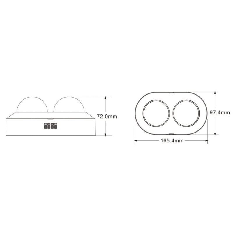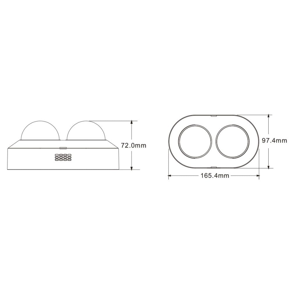 Панорамна 4Mp IP-відеокамера з 2 об’єктивами, з відеоаналітикою (детекція облич, виявлення людей/транспортних засобів, вхід/вихід із зони, підрахунок цілей); матриця 1/3″ CMOS x2; кут огляду горизонтальний 83°, вертикальний 42°; ІЧ-підсвічування до 30 м; відеокомпресія H.265+/H.265/H.264+/H.264; максимальна роздільна здатність 4Mp (2688*1520); 0.005 Люкс@F1.6, 0 Люкс з ІЧ; об’єктив f=3.6 мм x2; мережа: RJ45 100M; ONVIF, P2P; живлення DC12V/PoE; вбудовані 2 мікрофони і динамік, 1 аудіовхід / 1 аудіовихід; 2 тривожні входи / 2 виходи; запис на microSD карту (до 512 ГБ); ступінь захисту IP66; габаритні розміри: 165.4 / 97.4 / 72 мм; вага 0.755 кг
