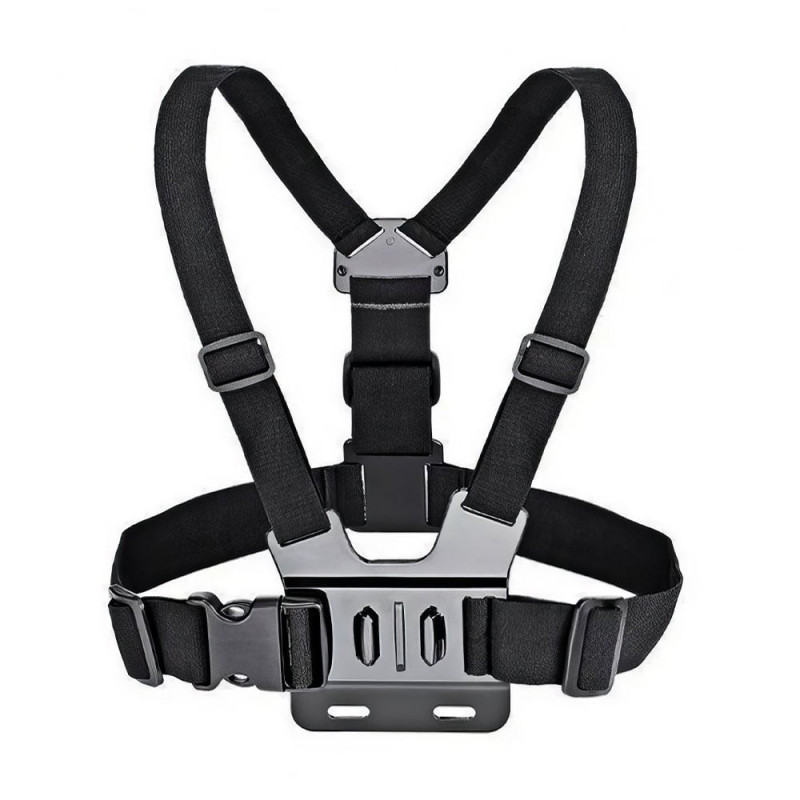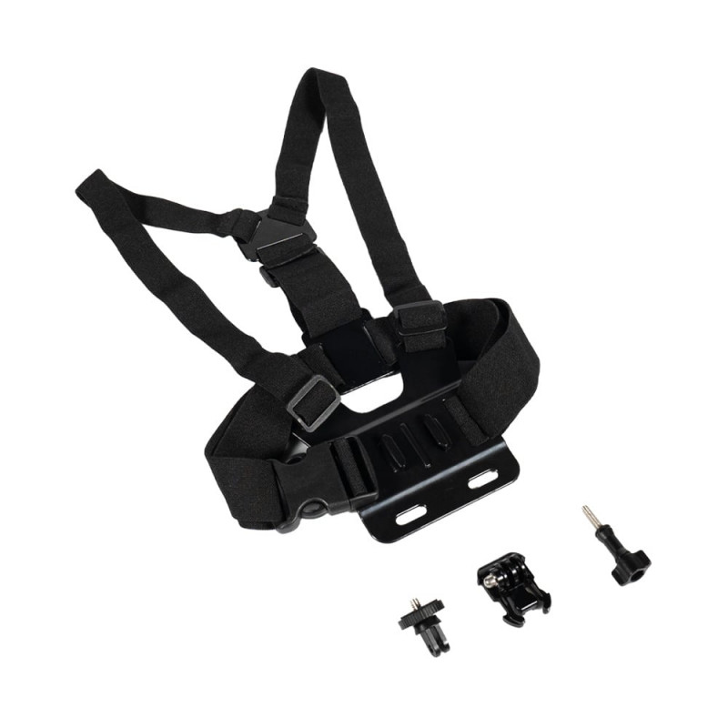 Нагрудне кріплення для фіксації бодікамер RECODA; ремені, що розтягуються; можливість регулювання за шириною та висотою; довжина регулюється від 55 до 80 см, висота регулюється від 28 до 38 см; у комплекті кріплення на груди, адаптер та гвинти для кріплення бодікамери