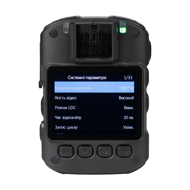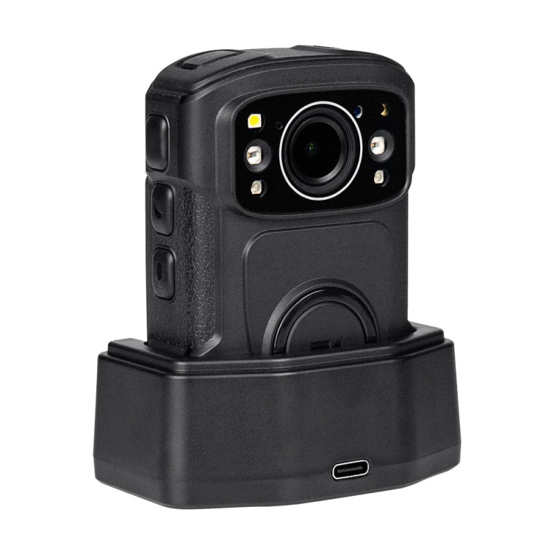 Нагрудний відеореєстратор з вбудованим GPS. Якість запису відео: 3840x2160/30fps, 2560x1440/30fps, 2304x1296/30fps, 1920x1080/30fps, 1280x720/30fps; циклічний запис відео: 5/10/20/25/30 хв. Роздільна здатність фото: до 48 Мп. Кут огляду 140°. ІЧ-підсвічування; LED-підсвічування та лазерний цілевказівник; запис на вбудовану пам'ять 128 ГБ. РК-екран 2". Роз'єм: USB-C. Ємність батареї: 3400mAh. Час роботи: до 11 годин. Ступінь захисту IP68. Габаритні розміри: 80 / 55 / 30 мм. Вага: 137 г. У комплекті зарядна док-станція, два види кріплень, блок живлення 5V/1A, кабель USB-C, перехідник USB-A/USB Type-C. Меню українською та англійською мовами
